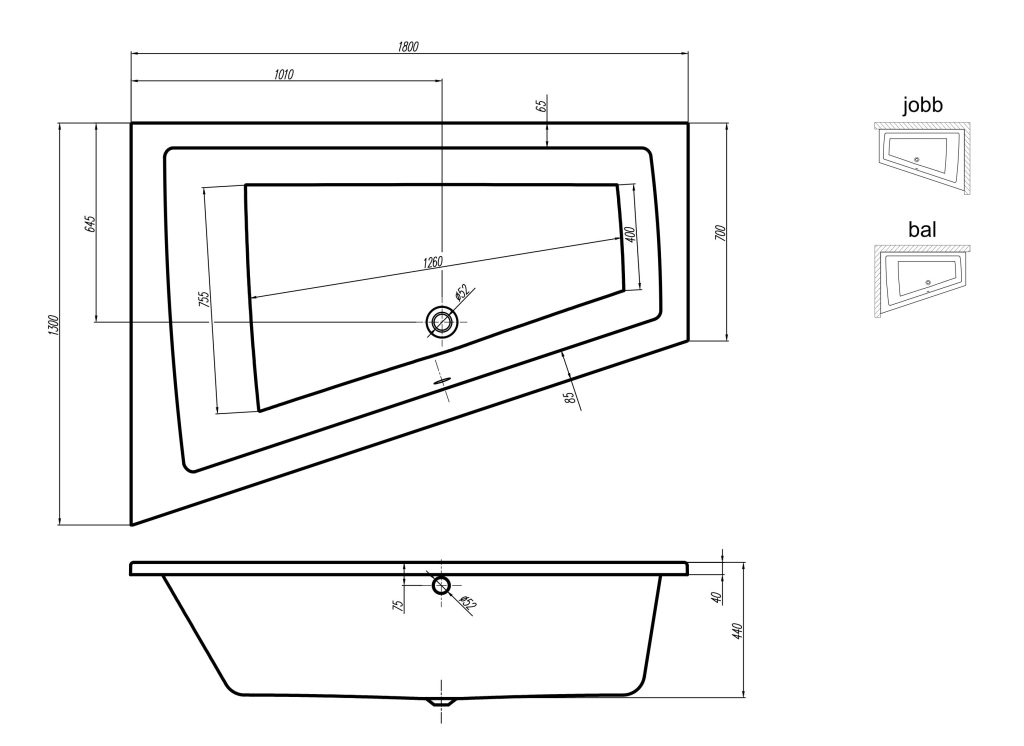 NIWELL Luxury aszimmetrikus akril kád