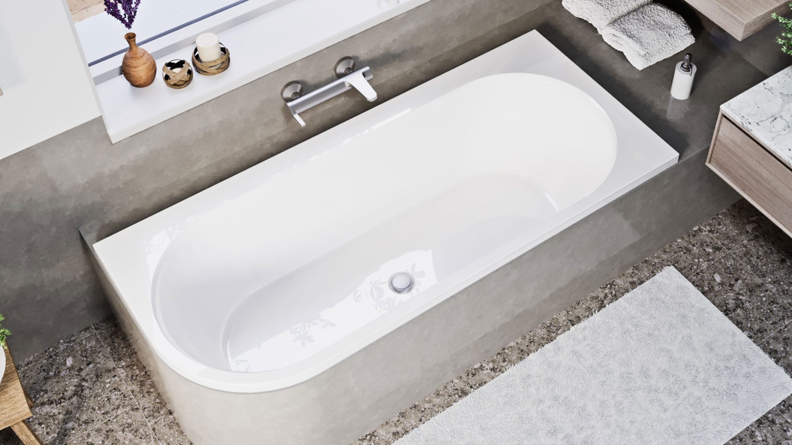 Az opcionális előlap segítségével az Aura kád könnyen beépíthető és stílusosan illeszkedik bármilyen fürdőszobai enteriőrbe. Ha modern, kényelmes és praktikus aszimmetrikus kádat keresel, a Niwell Aura ideális választás.