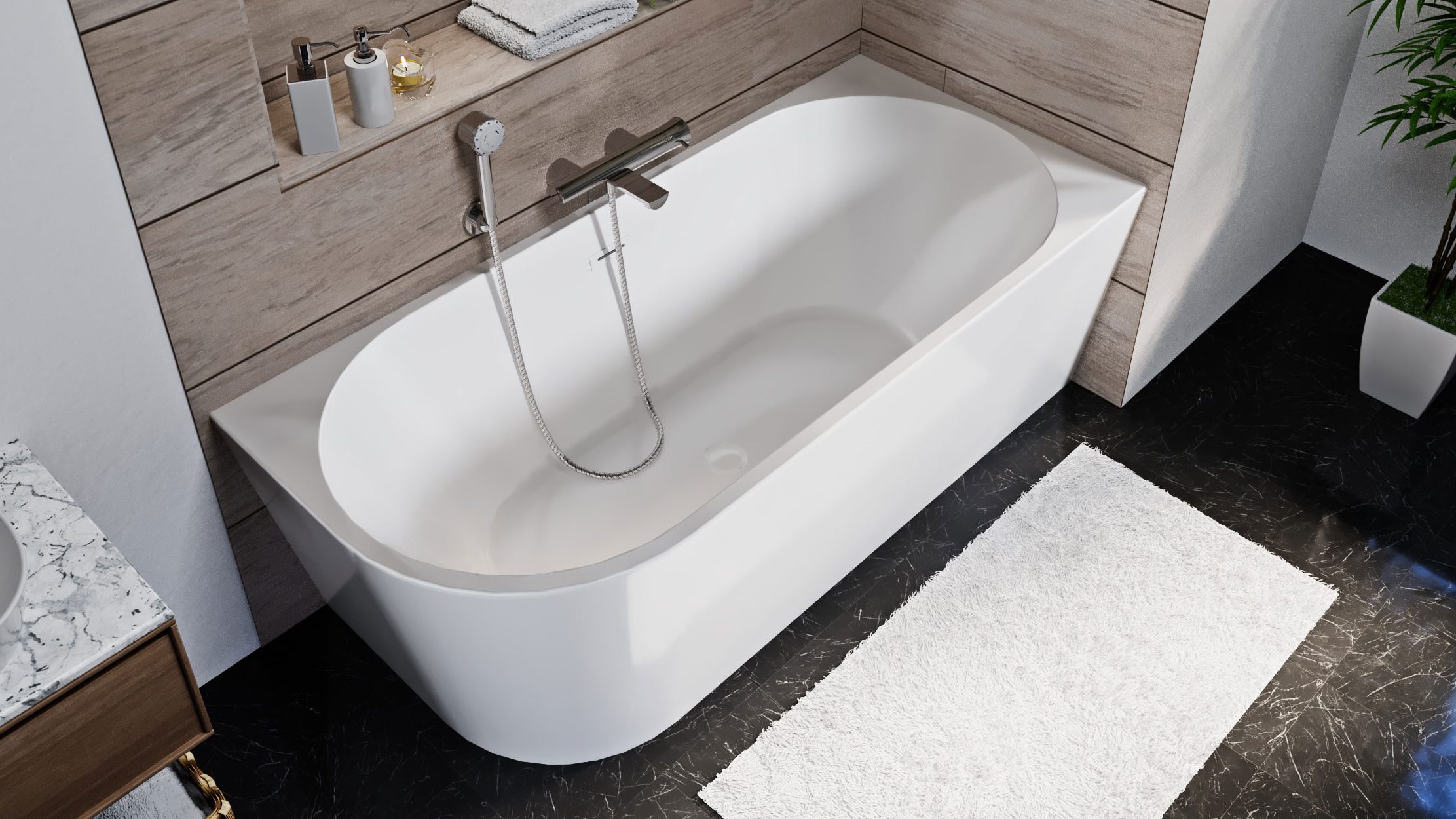A NIWELL AVIORA-R szabadonálló kád a modern fürdőszobák stílusos és praktikus központi eleme. Ez a jobb oldali sarokba szerelhető, fal mellé helyezhető szabadonálló kád ideális megoldás azok számára, akik elegáns megjelenést szeretnének kombinálni átgondolt, helytakarékos kialakítással. Letisztult formavilága és fényes fehér felülete harmonikusan illeszkedik modern, minimalista és prémium fürdőszobai környezetbe egyaránt.