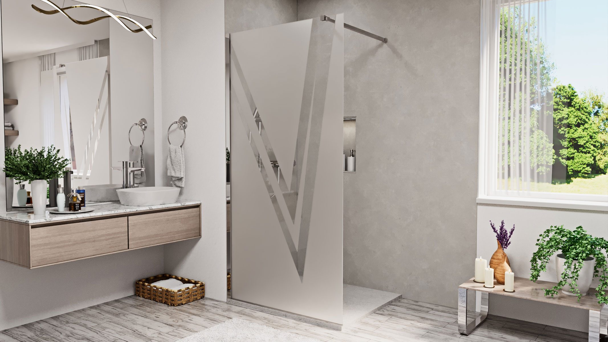 A N-smart Frida Victory walk-in zuhanyfal stílusos és praktikus választás a modern fürdőszobákba. A 100×200 cm méretű, V-mintás dekorral ellátott zuhanyfal letisztult dizájnt és eleganciát visz a térbe, miközben a nagy belépőnyílás kényelmes használatot biztosít. A 8 mm vastag, edzett biztonsági üveg rendkívüli stabilitást és tartósságot nyújt, garantálva a biztonságot a mindennapi használat során.
