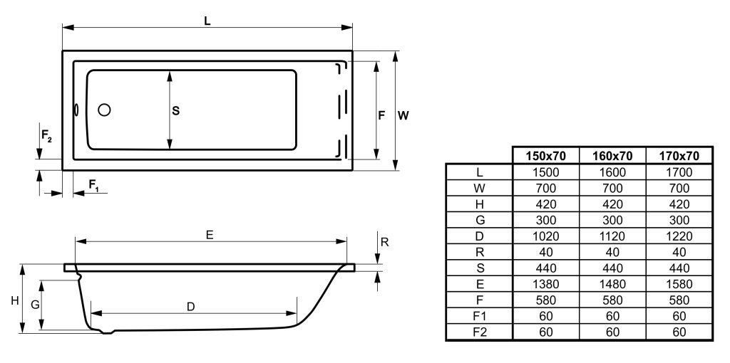 akril fürdőkád – kiegészítők nélkül