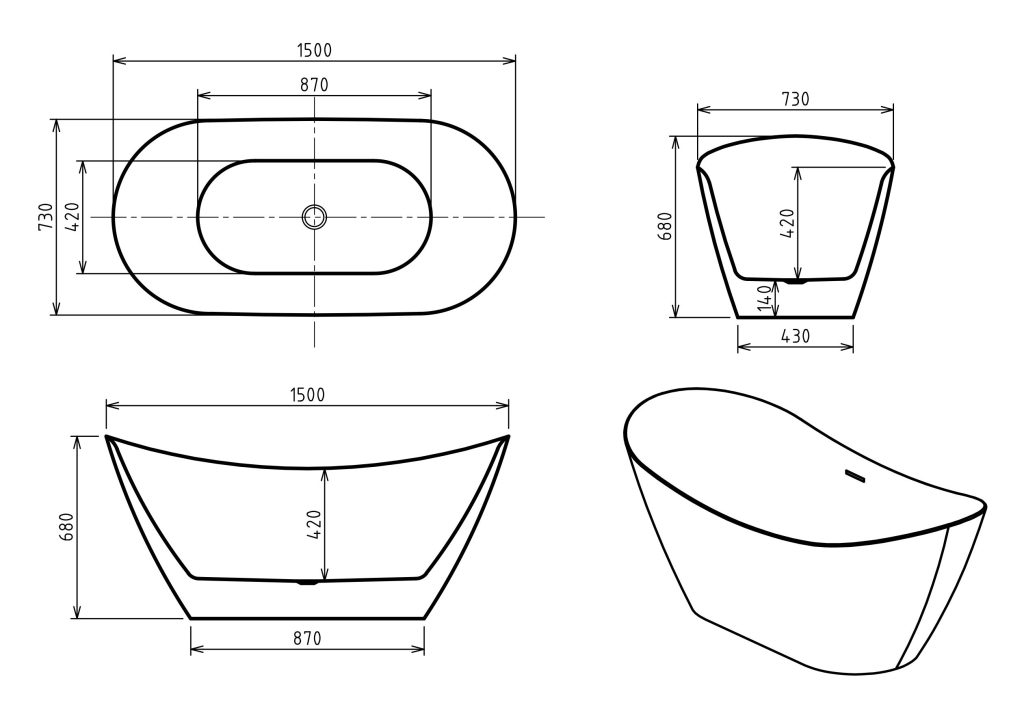 A 150×73 cm 160×75 cm vagy 167,6×73 cm méretű, 100% akrilból készült Lexie kád fényes fehér külső és belső felületével nemcsak gyönyörű, hanem tartós és könnyen tisztítható is. Az anyagának köszönhetően a kád hosszú élettartamú, ellenáll a karcolásoknak, és megtartja ragyogó megjelenését.