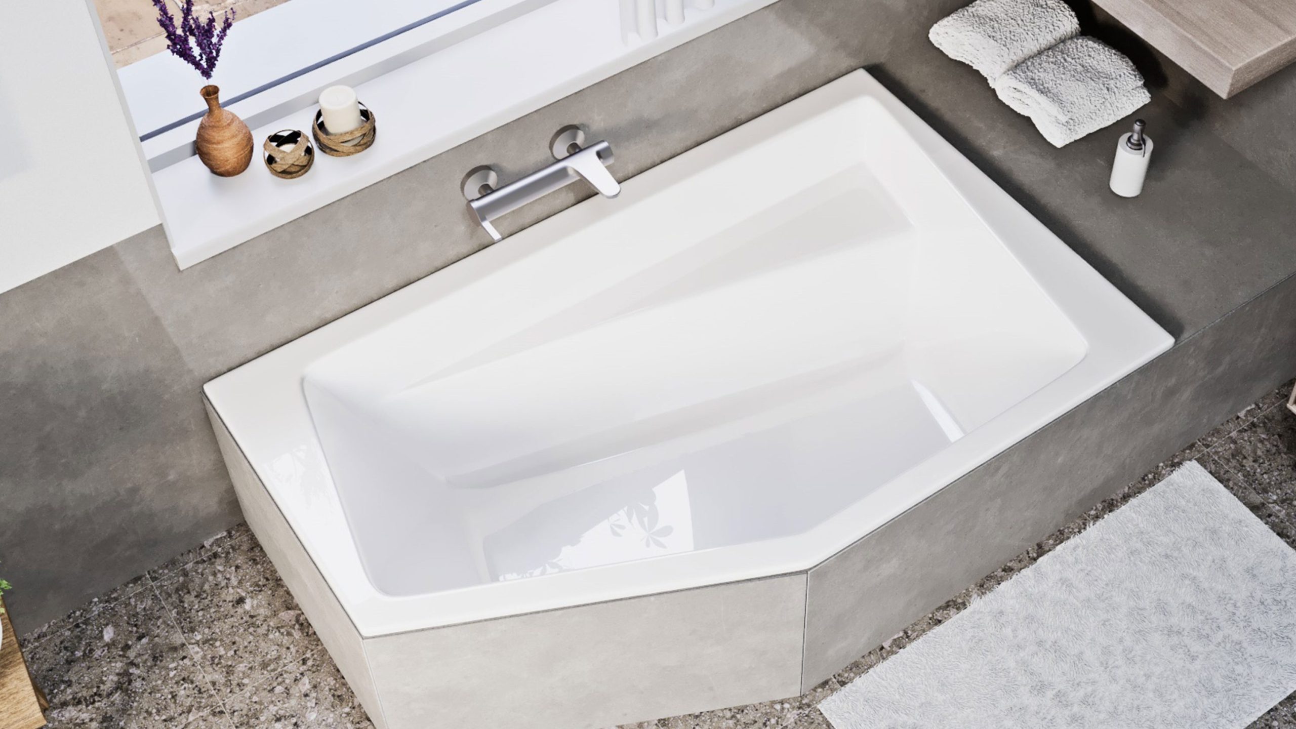 A 100% szaniter akril anyag biztosítja a tartósságot és az egyszerű tisztíthatóságot. Válassza a Niwell Vesper Slim aszimmetrikus kádat, ha egy modern, trendi fürdőszobai élményt szeretne kialakítani!